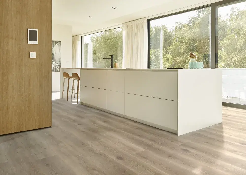 Vinylböden zeichnen sich durch ihre Strapazierfähigkeit, Langlebigkeit und Pflegeleichtigkeit aus. Sie sind besonders gut für stark frequentierte Bereiche wie Flure, Küchen und Badezimmer geeignet, da sie wasserabweisend und einfach zu reinigen sind. Zudem bieten sie eine gute Schalldämmung und sind fußwarm, was sie zu einer komfortablen Wahl für Wohnräume macht.